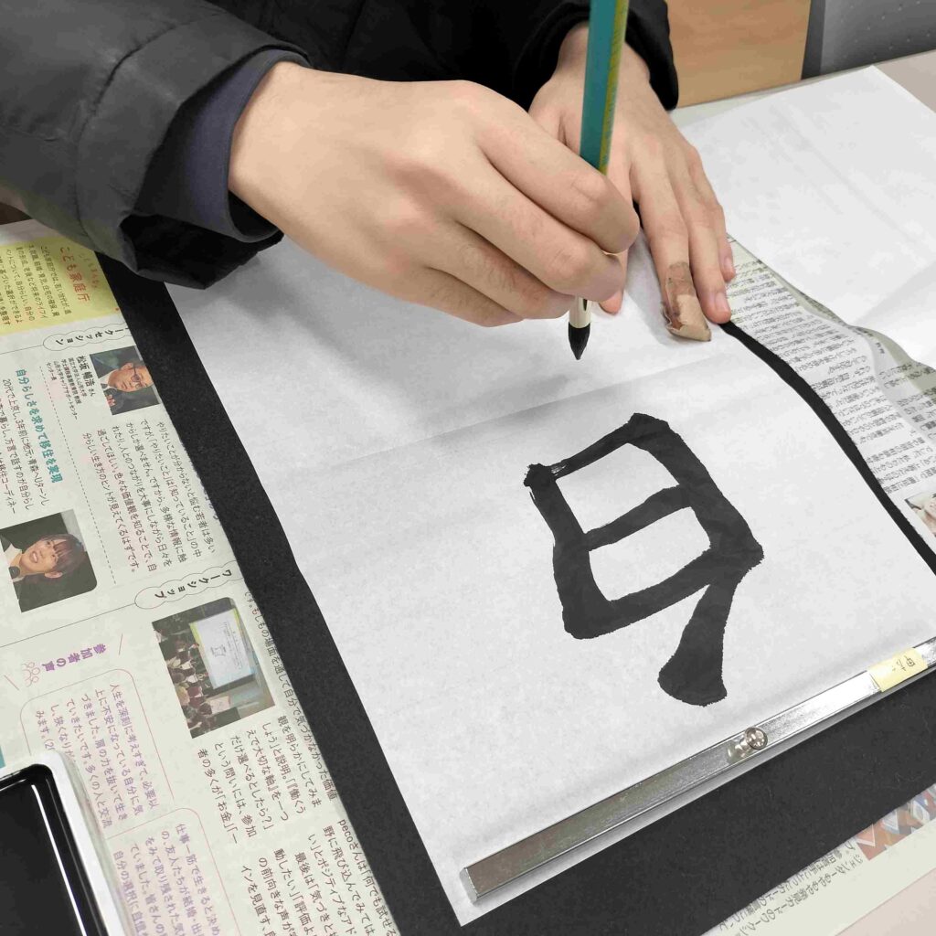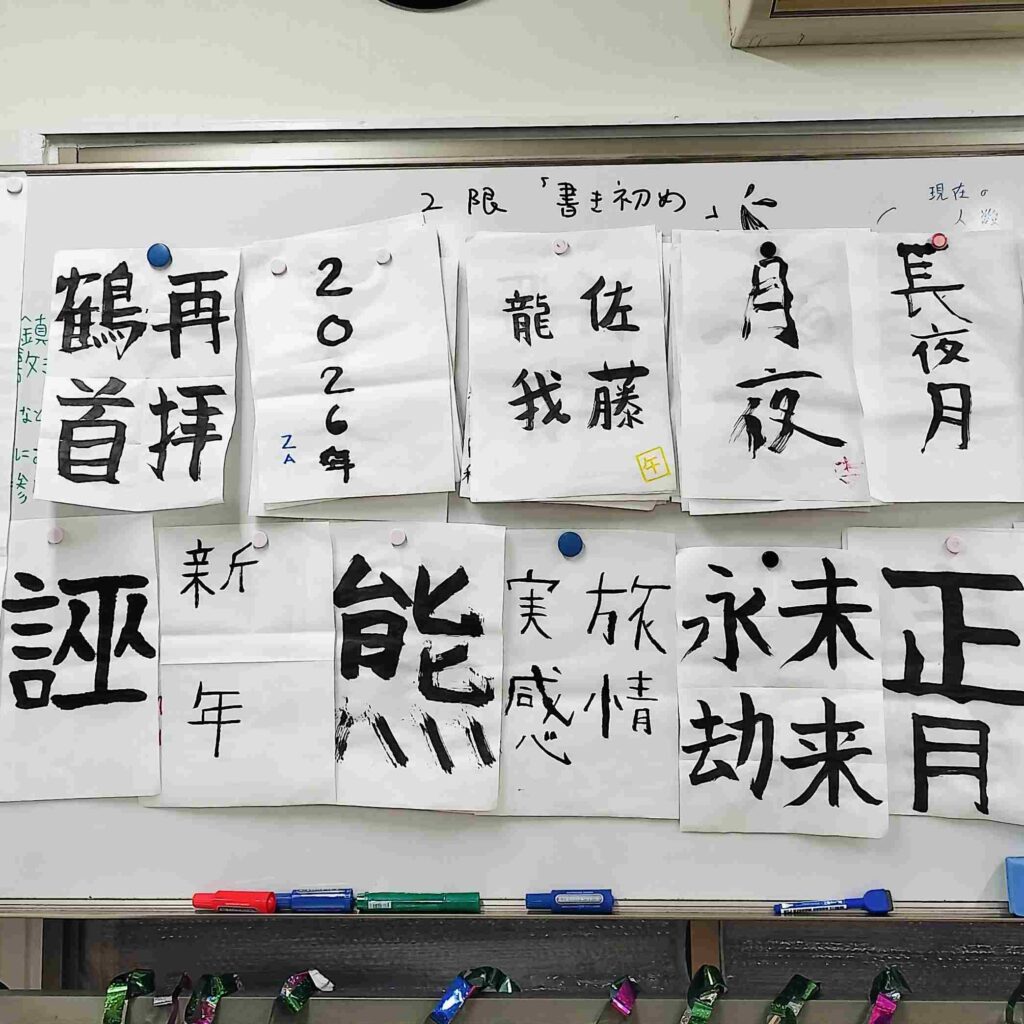 真剣な表情で筆を運ぶ姿に、新しい一年への意気込みが感じられました。